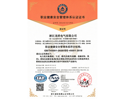 ISO45001职业健康安全管理体系认证证书